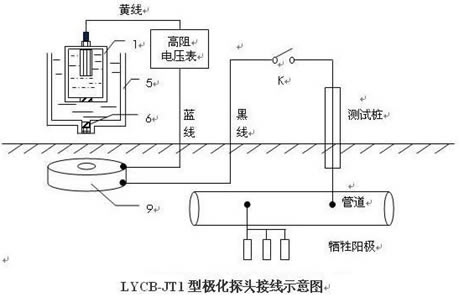 Ⅱ、通過(guò)鹽橋孔 6 由筒 1 內(nèi)置的銅/硫酸銅或鋅參比電極就可以很容易地用高阻電壓表測(cè)出鋼盤(也是地埋管道)的極化電位。由于鹽橋孔 6 的管壁很薄,半透膜微孔陶瓷與鋼盤距離很近則由此引起的 IR 降極小,在工程上完全可以忽略不計(jì),即所測(cè)出的電極電位就是管道上真實(shí)的極化電位。在電化學(xué)實(shí)驗(yàn)室為了準(zhǔn)確測(cè)量電極電位,通常要使用一支帶有魯金毛細(xì)管的鹽橋,以期使參比電極盡量靠近研究電極,從而消除 IR 降使電位測(cè)量盡可能真實(shí)。同樣 LYCB-JT1 極化探頭其鹽橋孔 6 與鋼盤 9 之間的距離(塑料管壁)也很小,僅為數(shù)毫米。實(shí)際就是工程上的“魯金毛細(xì)管”,從而使 LYCB-JT1 極化探頭能有效地抑制 IR 降。