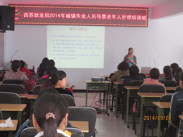2014年9月26號由西蘇旗就業(yè)局組織,錫盟天一家政服務(wù)有限責(zé)任公司承辦的西蘇旗首期母嬰護(hù)理員培訓(xùn)班開班,課程內(nèi)容涵蓋新生兒日常護(hù)理、新生兒常見病觀察、母乳喂養(yǎng)與輔食添加、新生兒洗澡與撫觸、產(chǎn)婦產(chǎn)后日常護(hù)理、產(chǎn)婦乳房護(hù)理、月子餐制作、產(chǎn)后形體恢復(fù)等基礎(chǔ)知識。