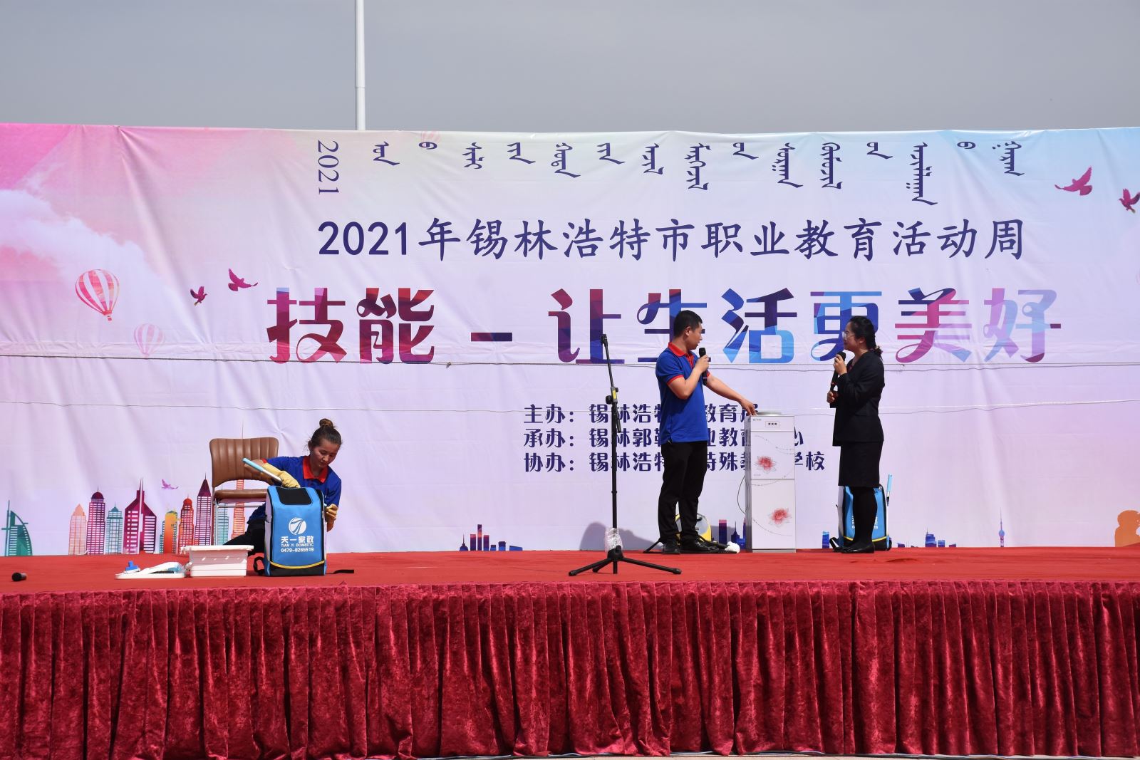 為進(jìn)一步深化“產(chǎn)教融合、校企合作”,加強(qiáng)職業(yè)教育宣傳力度,推動職業(yè)教育加快升級,錫林郭勒職業(yè)教育中心作為承辦單位于5月22日在錫林浩特市南廣場開展了主題為“技能讓生活更美好”的宣傳活動,這是自2015年國務(wù)院將每年5月第二周設(shè)為“職業(yè)教育活動周”以來的第七屆活動,錫盟天一家政公司作為產(chǎn)教融合單位參加了此次活動。