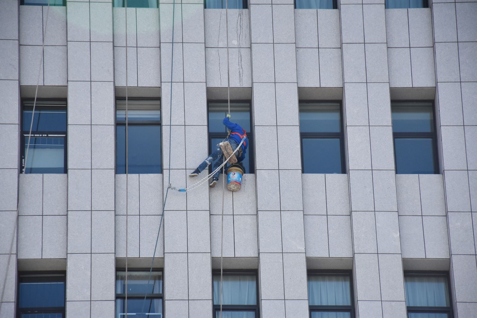仲夏端午一刻不停 保潔員變身“蜘蛛人”