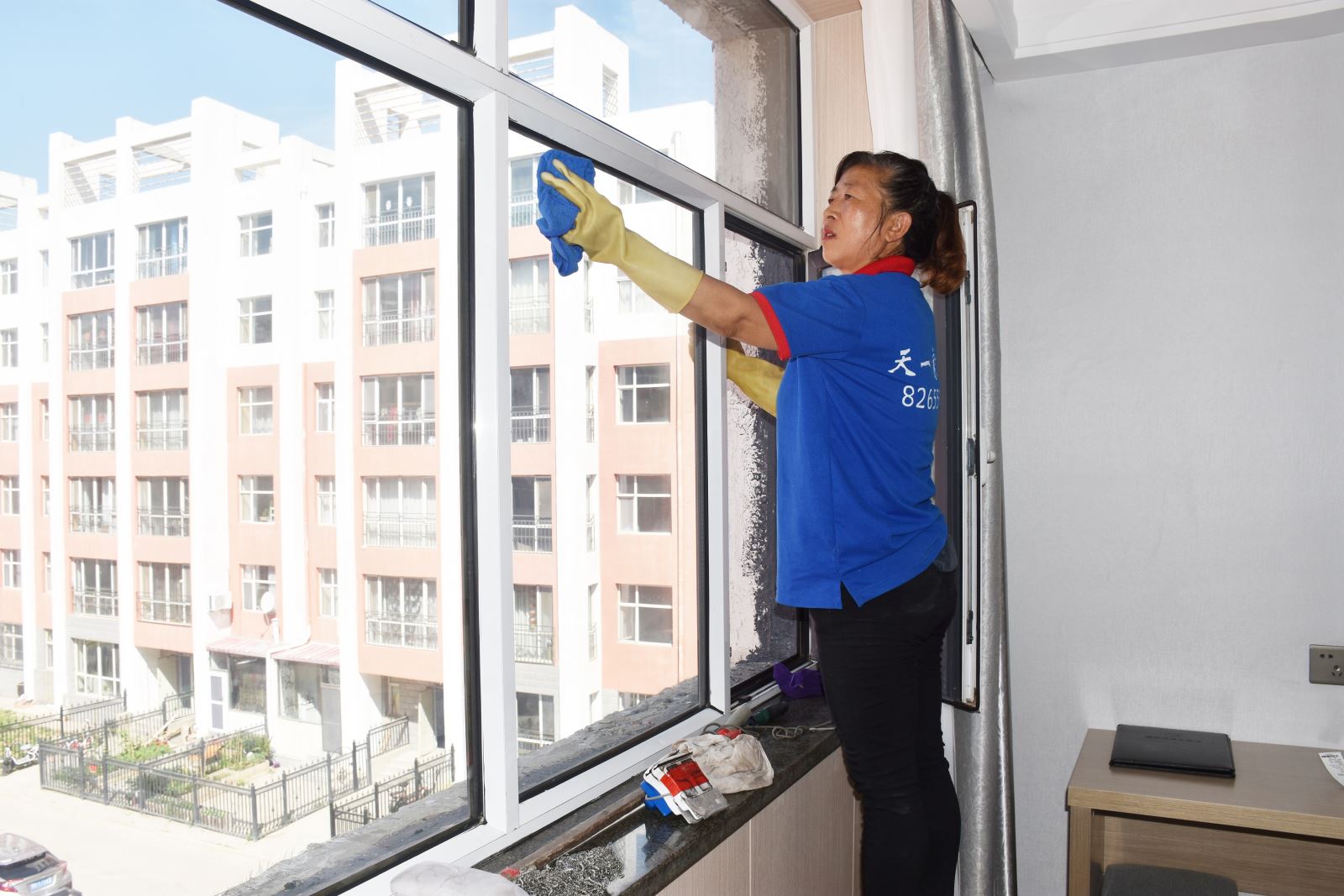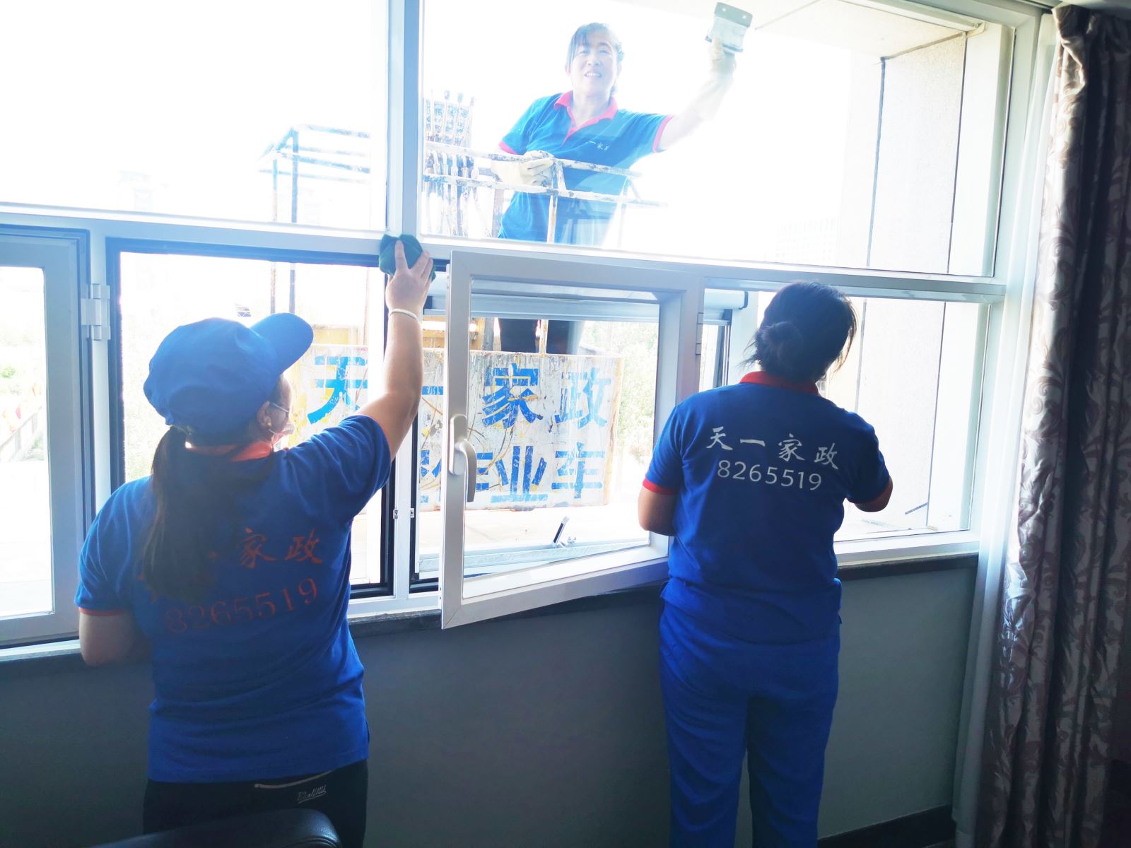 天一家政公司專業(yè)承接政府機(jī)關(guān)、企事業(yè)單位和賓館酒店高空玻璃幕清洗、保潔等服務(wù)