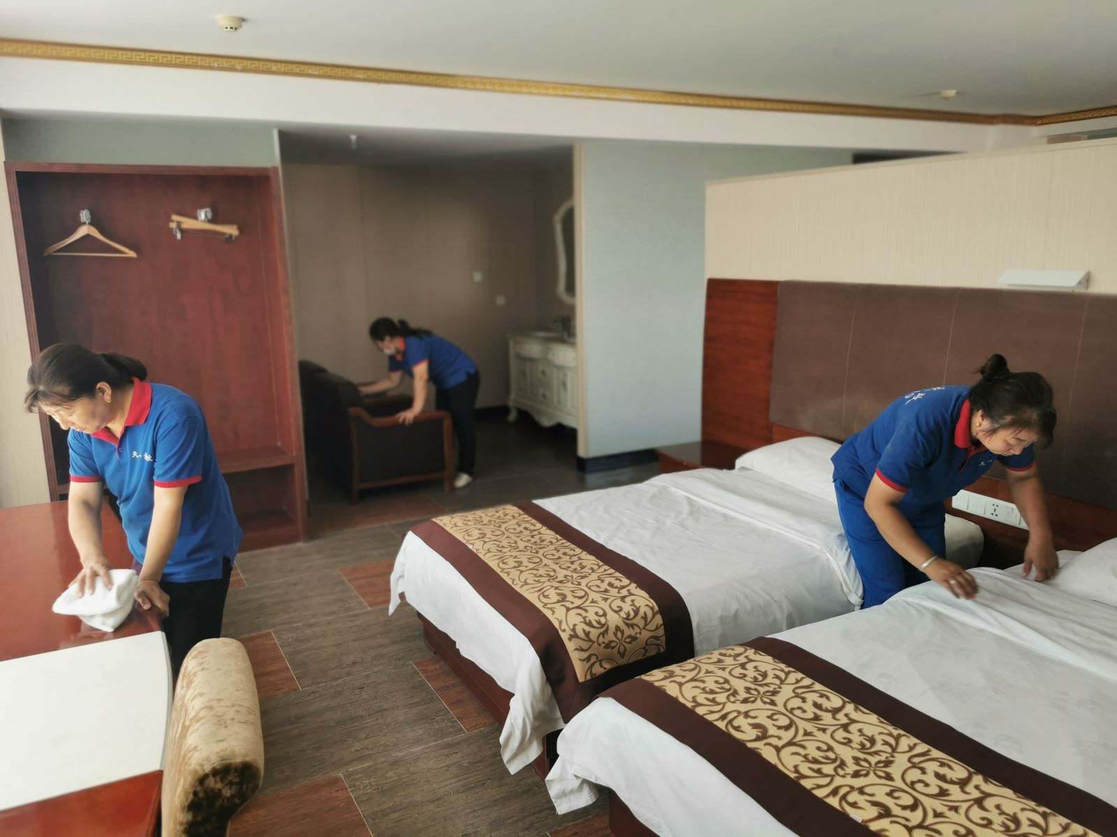 6月20日和27日,錫盟天一家政公司保潔團(tuán)隊(duì)深入錫盟電業(yè)局和鑫泰源假日酒店進(jìn)行室內(nèi)清潔和樓體外部玻璃清潔以及高空玻璃幕墻清洗服務(wù),保潔團(tuán)隊(duì)的每一個(gè)人以專業(yè)化的服務(wù)設(shè)備和規(guī)范化的操作流程,認(rèn)真負(fù)責(zé)、技術(shù)專業(yè),不放過(guò)每一個(gè)死角,將樓體內(nèi)外環(huán)境清潔如新,在這個(gè)驕陽(yáng)似火的夏日為客戶帶來(lái)了整潔、清爽,贏得了客戶的肯定和好評(píng)。